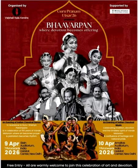 This coming April 9th and 10th, 2026, New Delhi will witness a radiant cultural extravaganza that unites devotion, heritage and national pride. The Guru Pranam Utsav ’26 – Bhaavarpan will serve as a dual celebration: honoring the sacred Guru-Shishya Parampara and commemorating the 150th anniversary of Vande Mataram, the song that continues to embody the soul of the motherland.