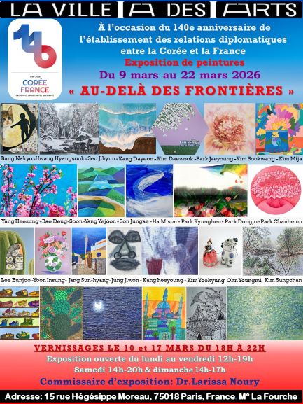In March 2026, Paris became the stage for a luminous celebration of art and diplomacy with the exhibition “Beyond Borders”, commemorating the 140th anniversary of diplomatic relations between Korea and France. Designed by the Institute of Culture Art’s Co Design in collaboration with the Mural Welfare Foundation, the exhibition unfolded under the visionary guidance of Dr. Larissa Noury, renowned artist and founding president of the Color-Space-Culture Association.