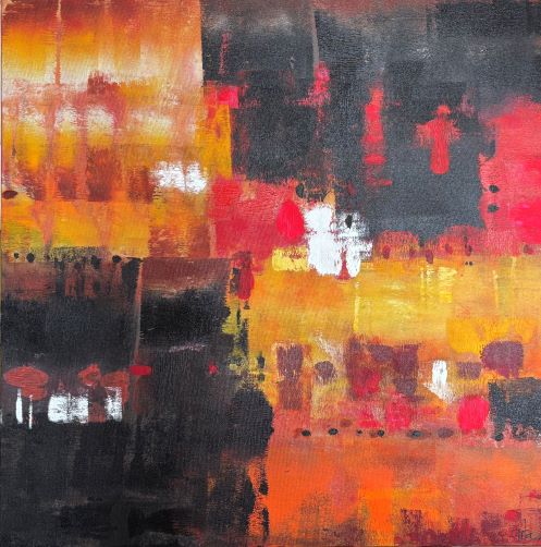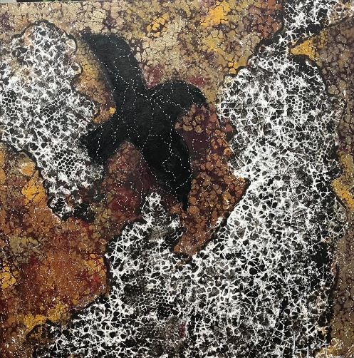 Her latest series of abstract paintings emerges from a profound dialogue between her long-standing red palette and the depth of black. Red, for Hudson, symbolizes blood, land, fire, memory and resistance, while black becomes a living space—absorbing, reflecting and transforming. Earth tones surface like traces of soil and time, grounding the compositions in lived experience. Through layered textures and controlled disruptions, her canvases explore the tension between darkness and vitality, silence and memory. Ultimately, these works transcend despair, offering instead a language of survival, resilience, and transformation—finding strength and continuity within the dark.