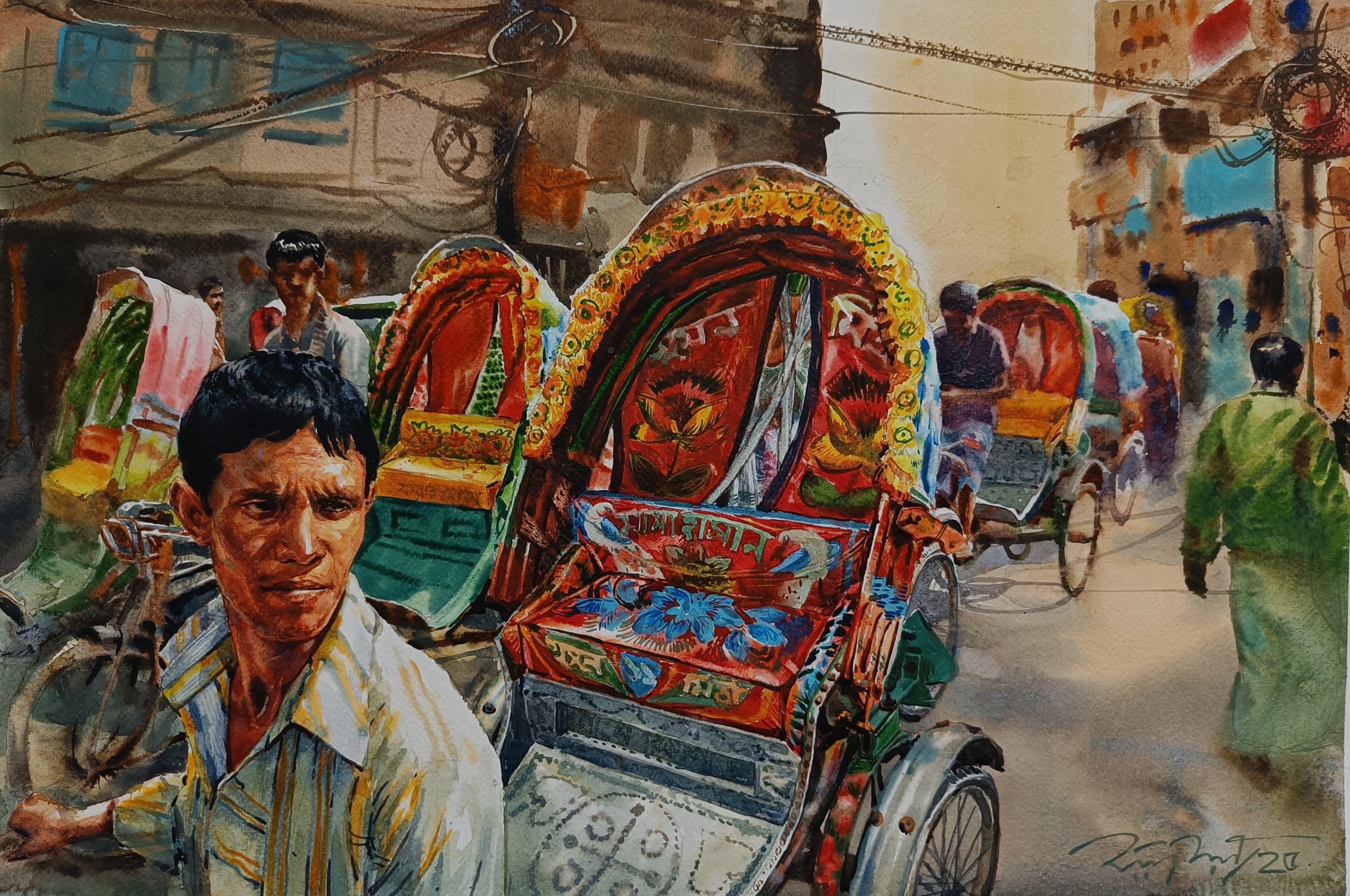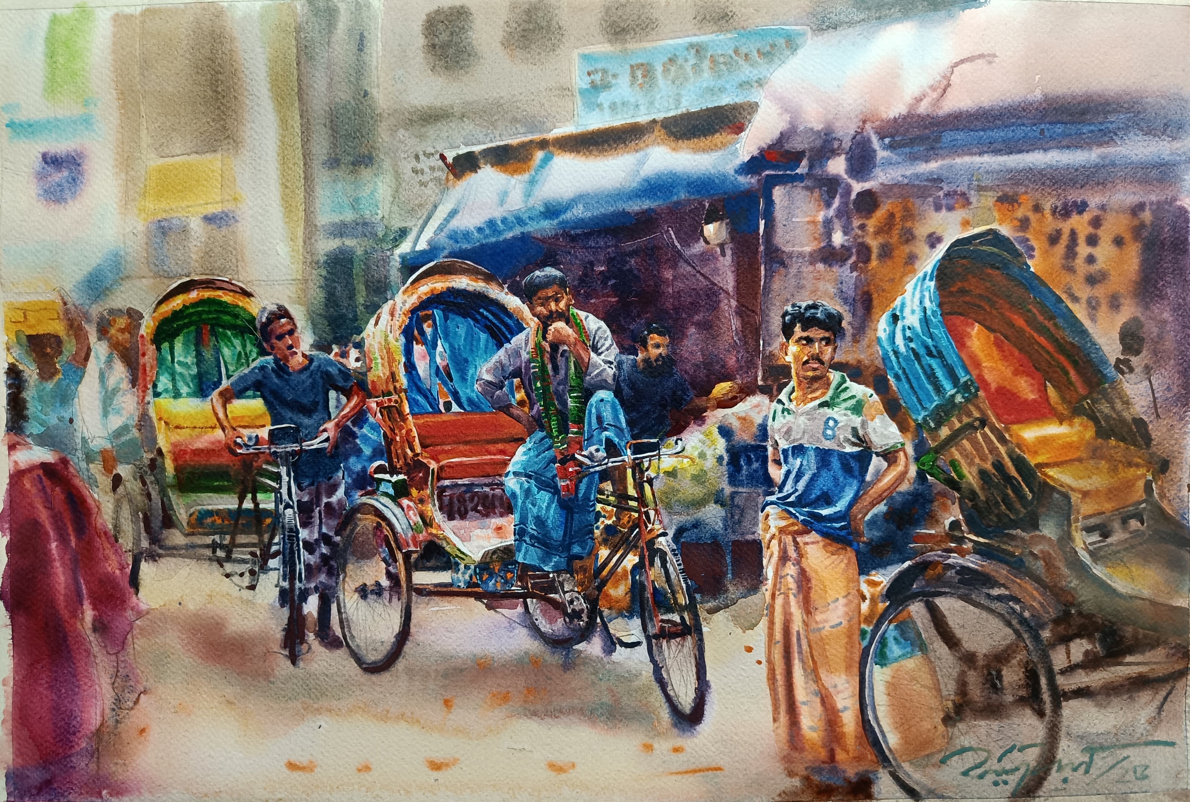 Today, Fariaz paints the everyday life of Banaras with a realist’s eye—rickshaw pullers, pilgrims and the quiet shift from tradition to modernity.