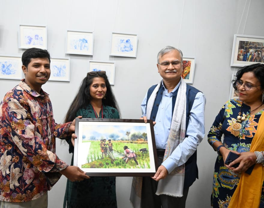 Inaugurated by Prof. Ajit Kumar Chaturvedi, Hon. Vice Chancellor of BHU, the show features the soulful works of Md. Fariaz Emran and Niharika Awhona Barsaat—two young visual artists from Bangladesh whose canvases echo memory, emotion and spiritual depth.