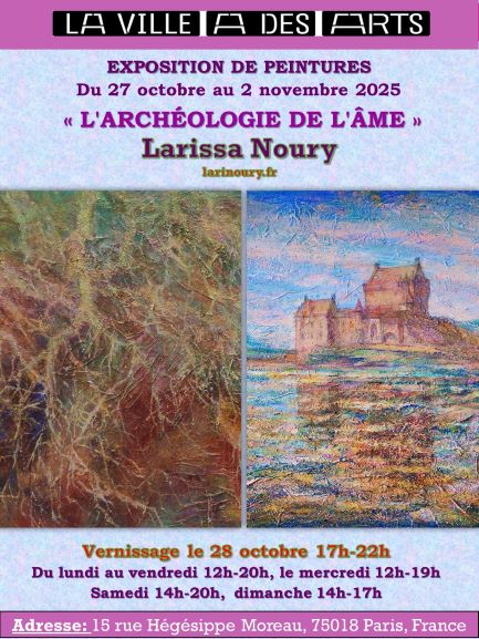 IN THE HEART OF HISTORIC MONTMARTRE, THE GALLERY “THE CITY OF ARTS AT THE VILLA DES ARTS” OPENED ITS DOORS TO A MESMERIZING JOURNEY TITLED THE ARCHAEOLOGY OF THE SOUL, AN EXHIBITION BY RENOWNED PARIS-BASED ARTIST AND COLORIST DR. LARISSA NOURY.