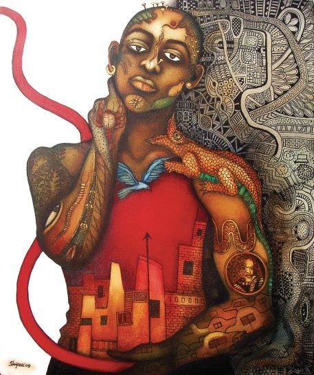 Eminent artist Shipra Bhattacharya’s recent works offer a poetic blend of emotion, memory, and myth. Floating (2023) contrasts lush life with haunting emptiness, held together by a serene central figure. In He (2021), the male body becomes a canvas of city stories, while People (2023) celebrates shared identity in vivid detail. Desire (2022) flows like a dream river through the urban soul, and He (2023) gently reshapes masculinity as care. Her She series, especially the iconic 2002 piece, reveals the feminine as divine, cosmic, and deeply imagined—a quiet universe between truth and transcendence.