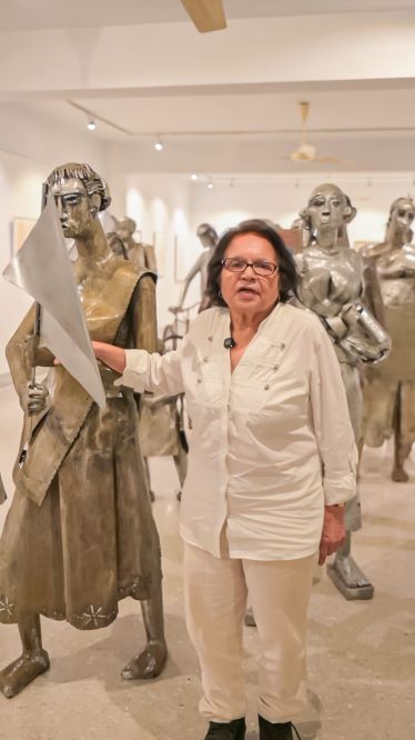 “I have always loved shaping metal—heat and a careful hand let you coax any form from a stubborn sheet,” reflects Kiran Dixit Thacker, the only living female disciple of Ramkinkar Baij. While bronze remains close to her heart, its cost and fragility led her to embrace mild steel, a medium that allows boldness with economy. Her years in London sharpened her technique, yet it is Santiniketan—with its ponds, birds, barefoot walks, and shifting seasons—that continues to inspire her deepest enchantment.