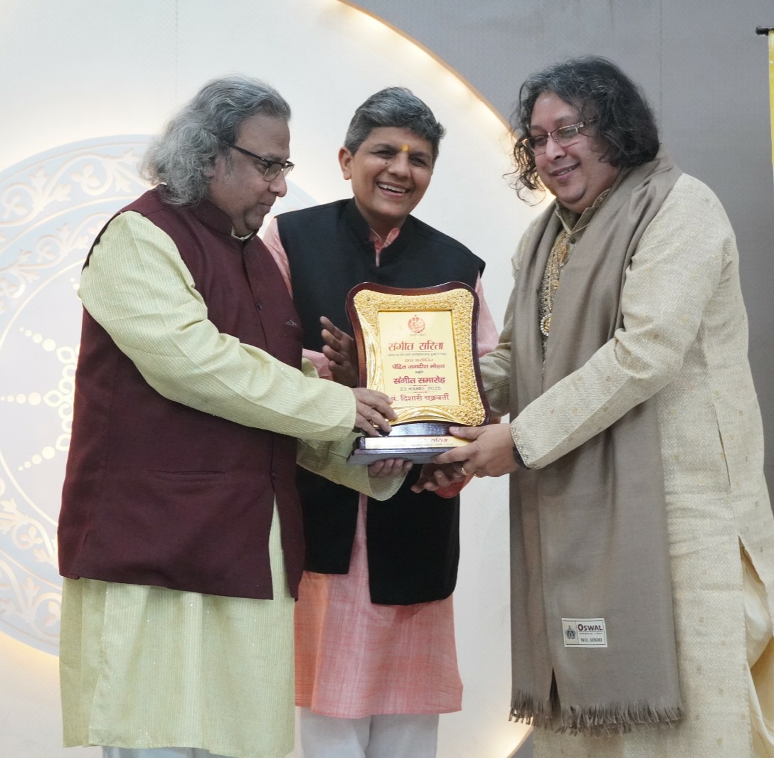 In the presence of the committee and honoured guests, chief guest Pandit Vijay Shanker Mishra felicitated Pandit Dishari Chakraborty—an artist who carved his own path, yet carried forward the timeless soul of tradition. With heartfelt gratitude, Pandit Chakraborty acknowledged the blessings of Pandit Dr. Devendr Kumar Verma and Sri Rajendra Kumar Sharma, along with the unwavering support of Sangeet Sarita’s distinguished members: Sri Vikas Sancheti (Vice President), Dr. Rishiraj Pathak (Secretary), Sri Varun Aggarwal (Treasurer), Sri Sumit Garg, Sri Kunal Solanki, Sri Chintan Kapoor and Sri Sachin.