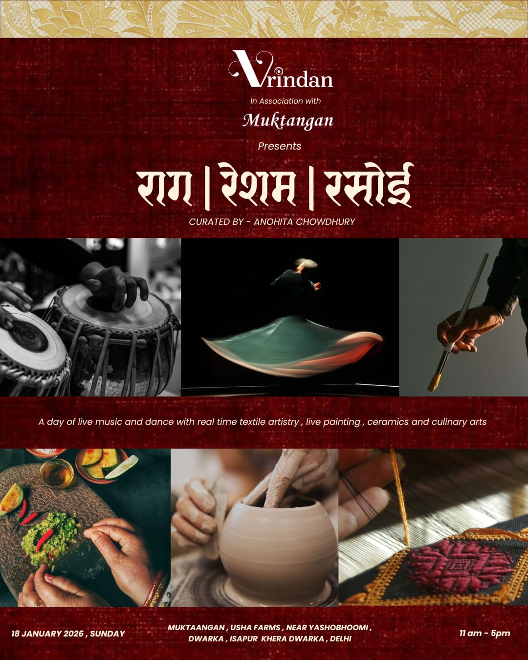 Curated by the gifted textile designer and dancer Anohita Chowdhury, this unique initiative weaves together the threads of music, dance, textiles, painting, ceramics and culinary art into one vibrant day.
