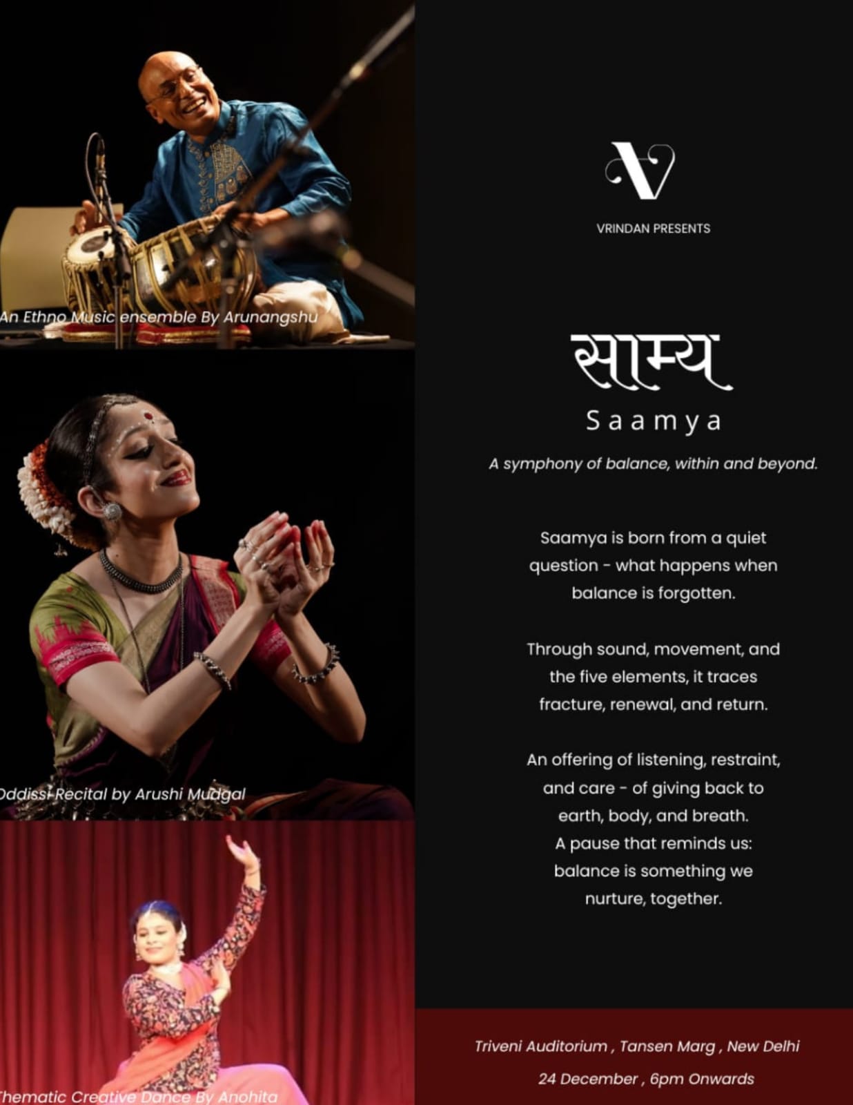 On December 24, 2025, Triveni Auditorium in New Delhi will transform into a sanctuary of stillness and movement as Saamya: A Symphony of Balance, Within and Beyond unfolds. Presented by Vrindan, this soulful offering invites audiences to pause, reflect and reconnect—with the earth, the breath and the body.