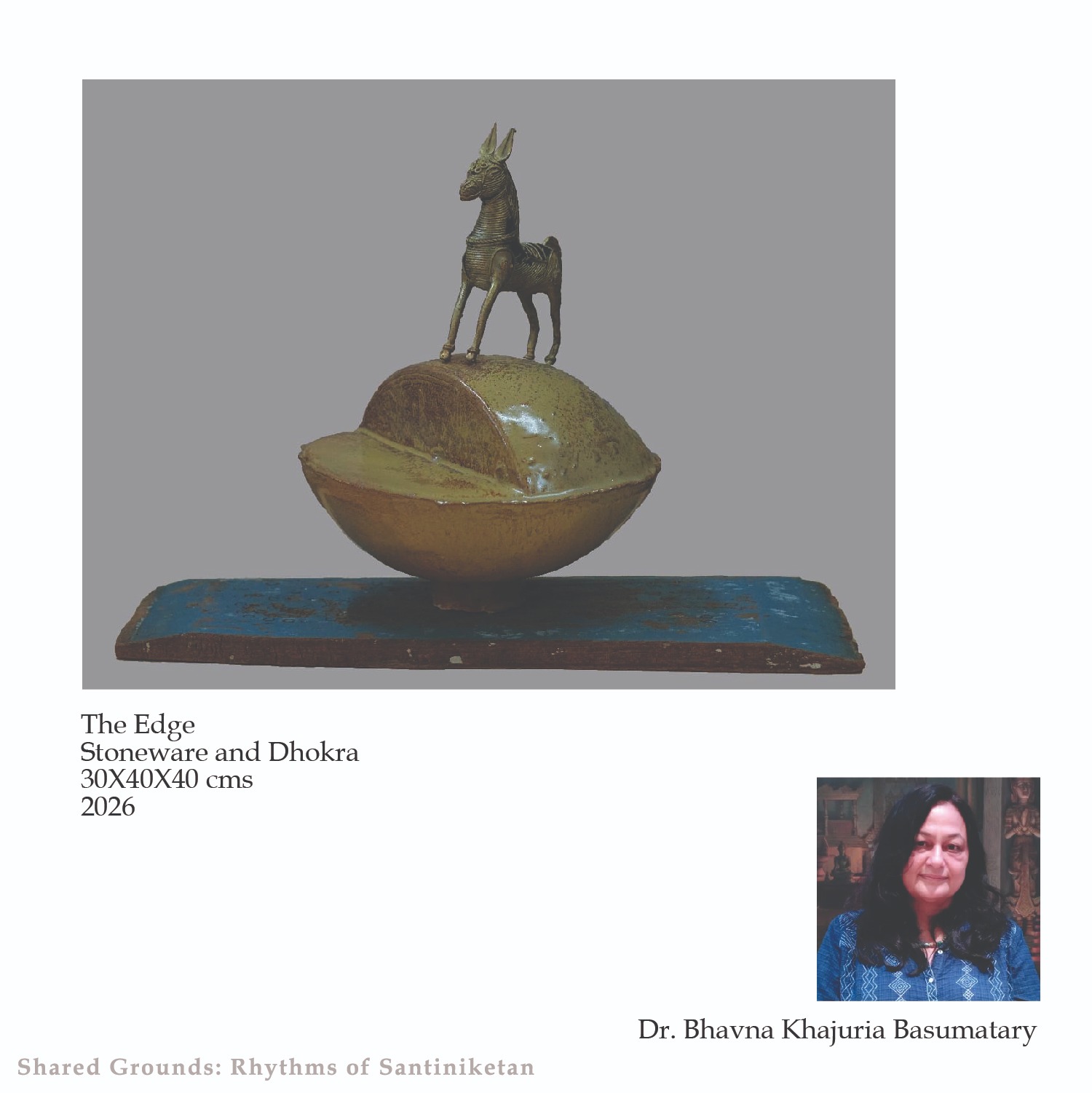 In Shared Grounds: Rhythms of Santiniketan, curated by Dr. Bhavna Khajuria Basumatary, the gallery becomes a living dialogue—where memory meets material, and tradition dances with experimentation. This group exhibition gathers distinct artistic practices into a resonant field of inquiry, exploring identity, ecology and transformation. Rather than prescribing meaning, it invites reflection, allowing each work to speak in its own rhythm while echoing a collective pulse. Here, difference is not division, but a dynamic harmony—an elegant constellation of shared intent and unfolding imagination.