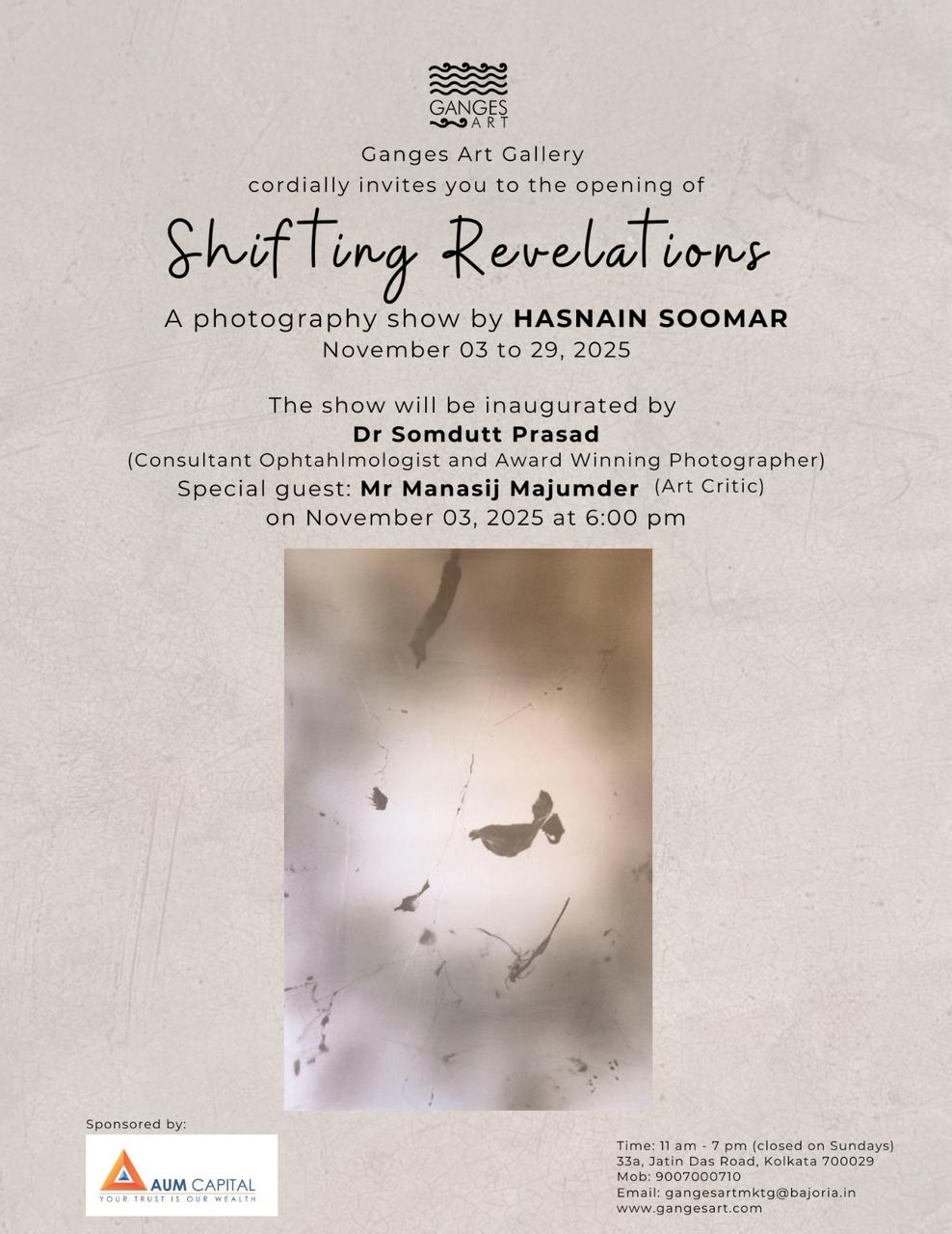 From November 3 to 29, 2025, Ganges Art Gallery in Kolkata hosts Shifting Revelations, a powerful photography exhibition by renowned Hasnain Soomar that invites viewers to see beyond the surface.
