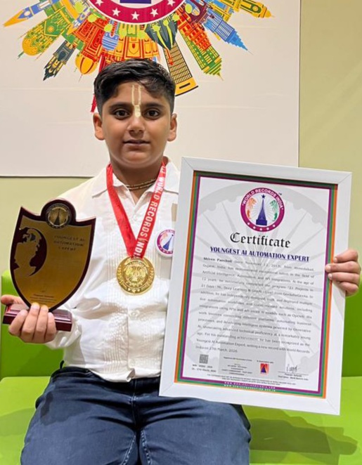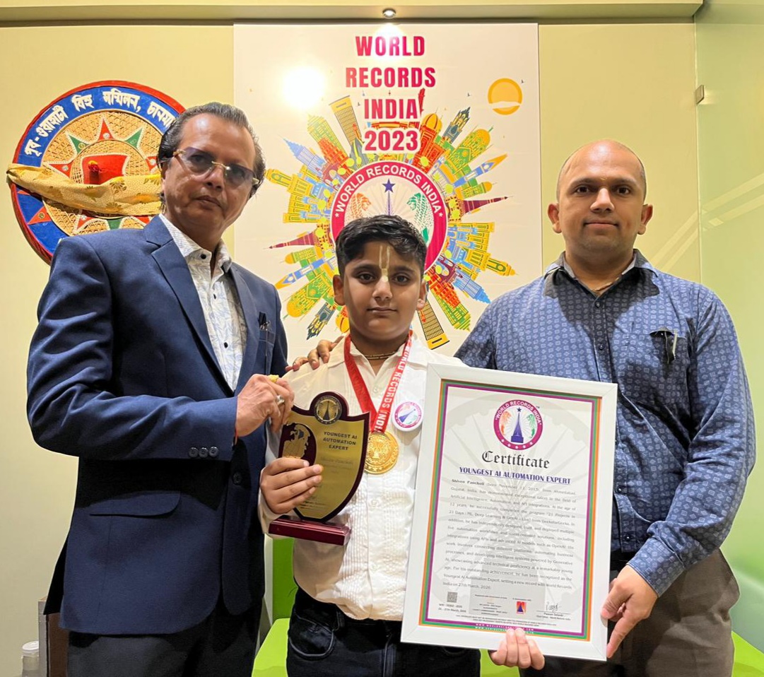 On March 27, 2026, Shiven Pancholi, a 12-year-old prodigy from Ahmedabad, Gujarat, was officially recognized by World Records India as the “Youngest AI Automation Expert.”