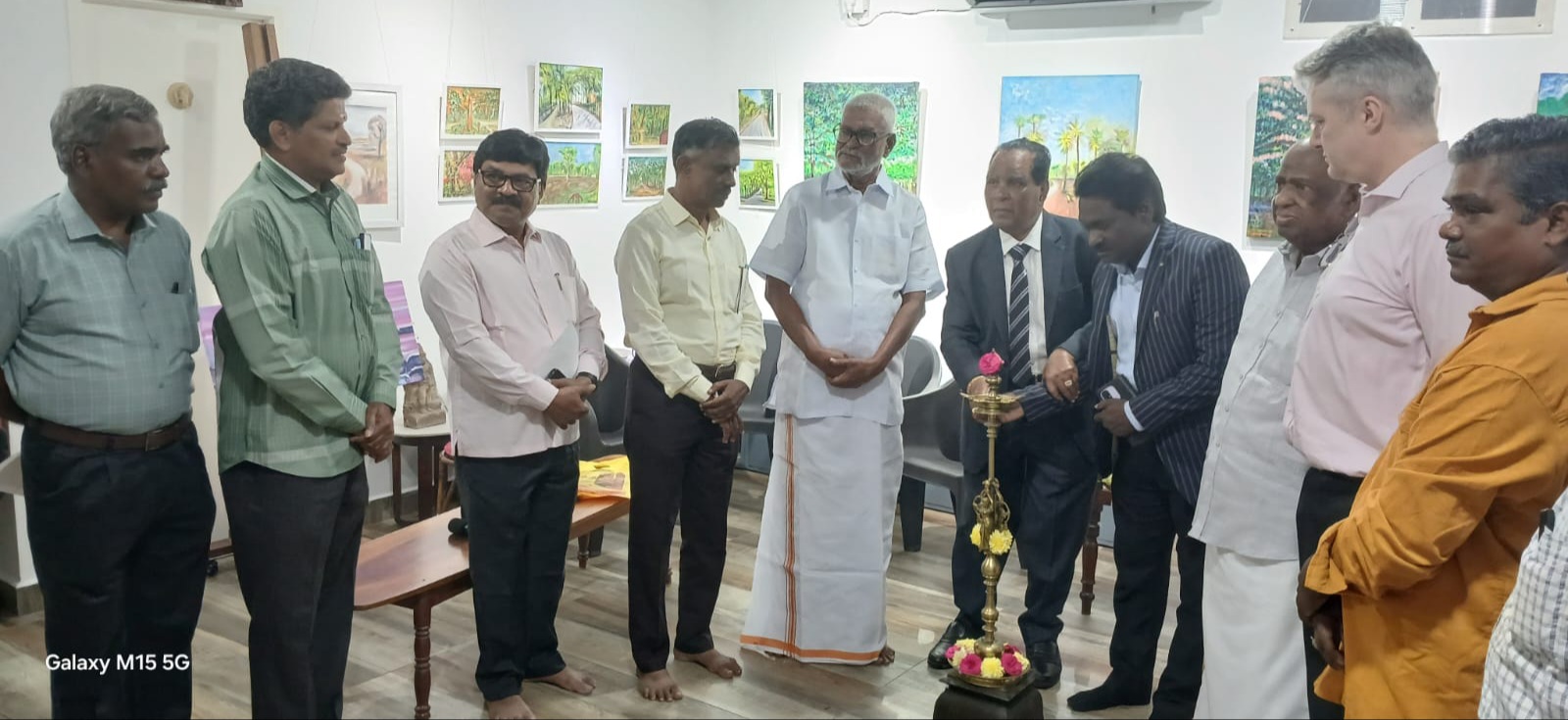 A heartfelt felicitation address was delivered by Mr. SMC Rajesh, artist of Vanna Aruvi Art Gallery, Puducherry, whose words resonated with gratitude and admiration. Special thanks were extended to Ejomale, Manimaran of Vanna Aruvi Gallery, Mr.Murugavel, Annai Kalai Koodam, Mr.Balasubramanian, Annai Kalai Koodam , Puducherry, Artist Vasanth, Artist Bipin Achariya, Kalaimamani C.Ravi, Kalaimamani Saravanacoumar, Artist and Art Director Remiyan, Poet V.Kalavisu, Photographer Nehru, Artist Rajcannane, artist Iyyapan and art lovers joined the opening ceremony.