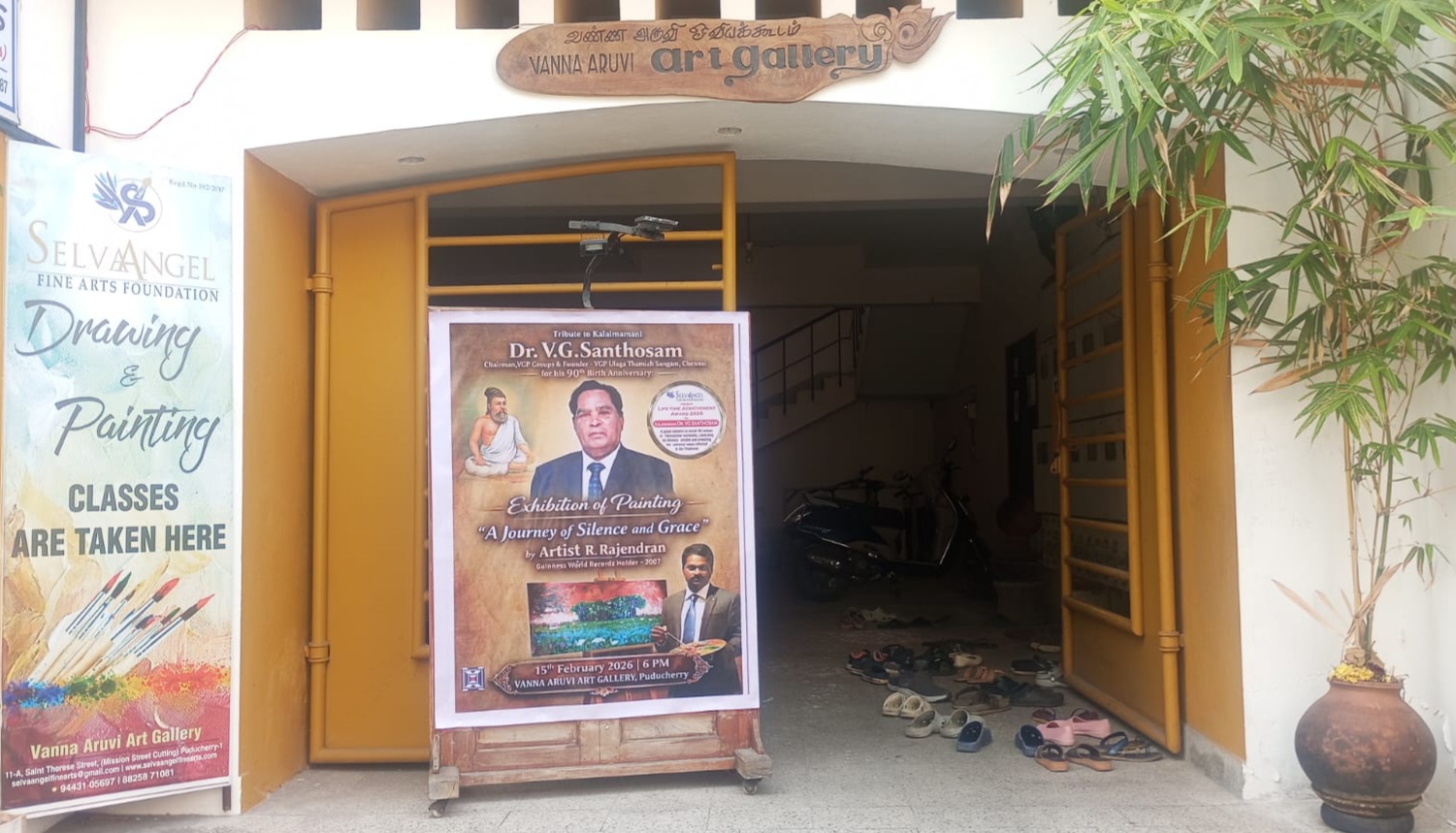 Hosted at the Vanna Aruvi Gallery, Puducherry, the one‑man show was inaugurated on 15th February 2026 at 6 PM and continued until the 17th, marking a grand cultural event that blended artistry with reverence.