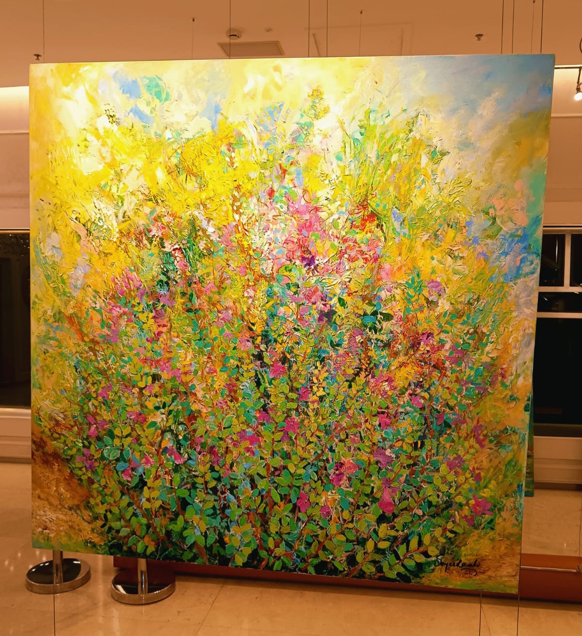 At Sublime Galleria in UB City, Bengaluru, renowned artist Sayeeda Ali unveils Bloom In Harmony—a solo exhibition that speaks gently to the soul. With over 35 years of devotion to her craft, Sayeeda’s canvases speak in whispers—layered with blooming florals, tranquil skies and textures that echo the rhythm of nature.