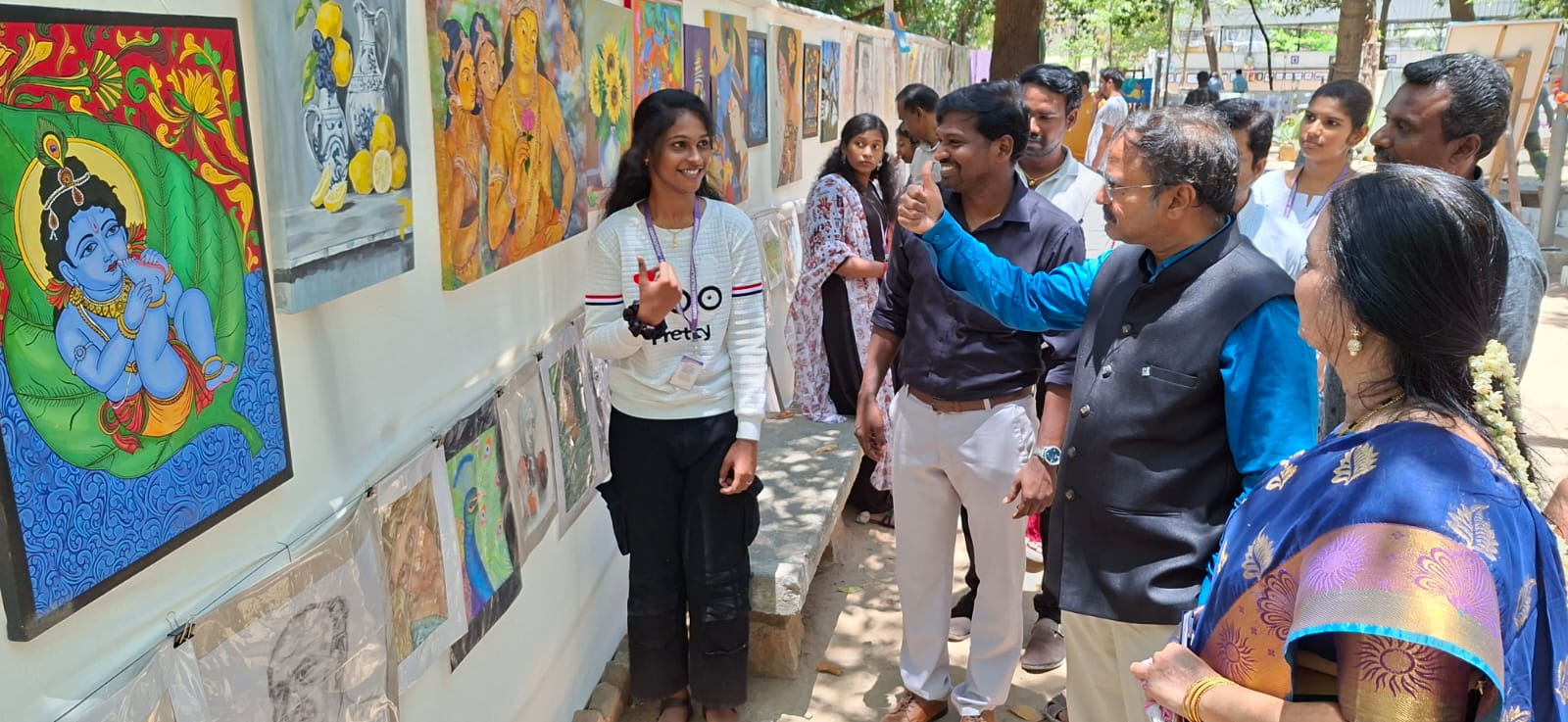 Each year, this exhibition becomes more than a showcase—it is a dialogue between tradition and innovation. Students of Bharathiar Palkalaikoodam present works that reflect not only technical mastery but also the courage to explore new visions. From delicate brushstrokes to bold experiments, the exhibition mirrors the evolving identity of contemporary Indian art while remaining rooted in heritage.