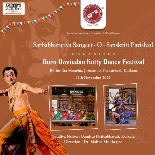 The Guru Govindan Kutty Dance Festival, organized by the Sarbabharatiya Sangeet-O-Sanskriti Parishad, returns on 17th November 2025 at Rathindra Mancha, inviting connoisseurs and newcomers alike to witness the soul of tradition.