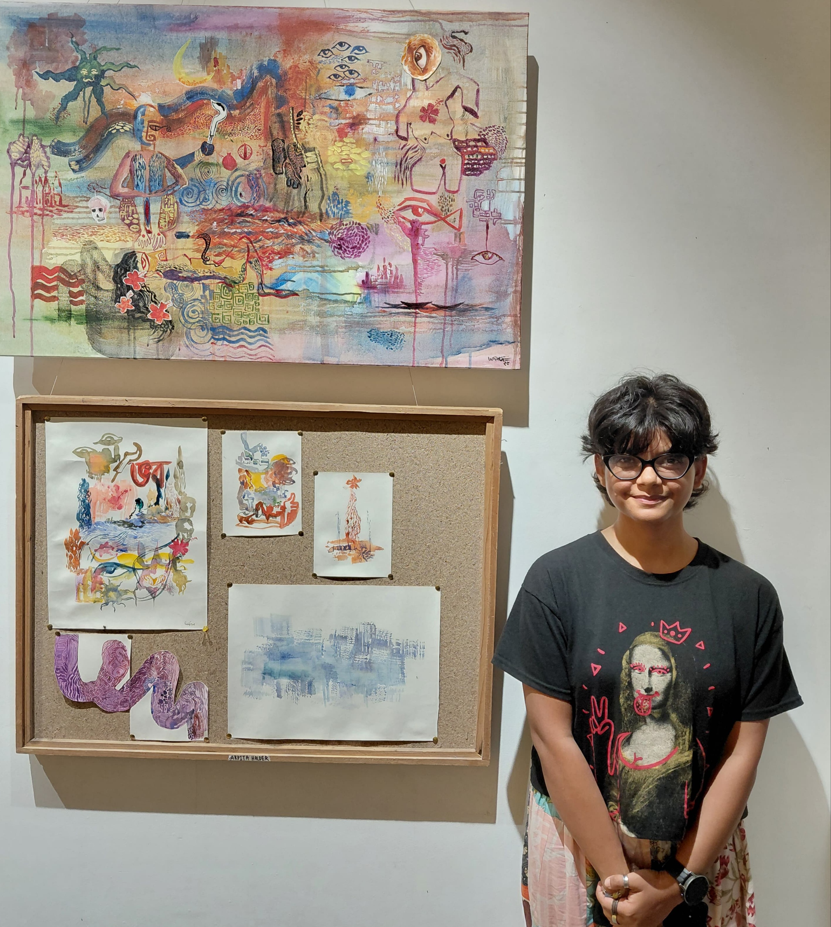 “It’s an international art camp which includes students from Bangladesh and all over India. The gallery itself is situated by the river Ganges, creating a meditative atmosphere perfect for getting lost in the waves of music. The music guided my brush like a quiet meditation—painting and singing became one soulful rhythm,” says Medha.