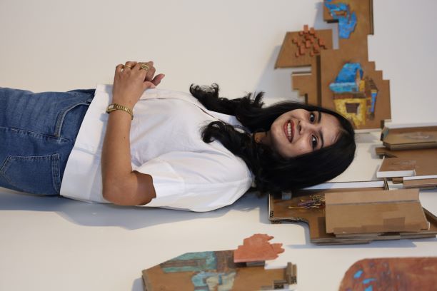 Born in 1997 and trained at Sir J.J. School of Art, Patil’s sensibility is steeped in the Portuguese notion of saudade—a tender longing that permeates her use of corrugated sheets, found materials, and everyday objects. Her art becomes a vessel for themes of identity, migration and belonging, expanding from personal narratives into broader socio-political terrains.