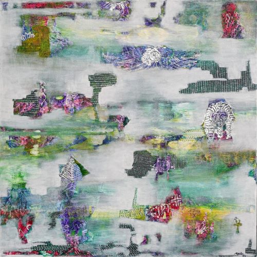 “Monika Sharda’s works represent the meditative aspects of art making. Right from the Oriental landscape paintings to the Tibetan Tankha paintings, the images and vistas are created not merely for painterly pleasure, instead, they are created as a part of their effort to find the core and the harmony of things. They are frozen narratives. Unlike the western modern and contemporary art, Monica’s works have a meditative content in them; they are process based with layers of paints and narrative symbolism built up within and without these layers to capture the contemplative painterly effects.” — JohnyML, the art historian and curator of this exhibition.