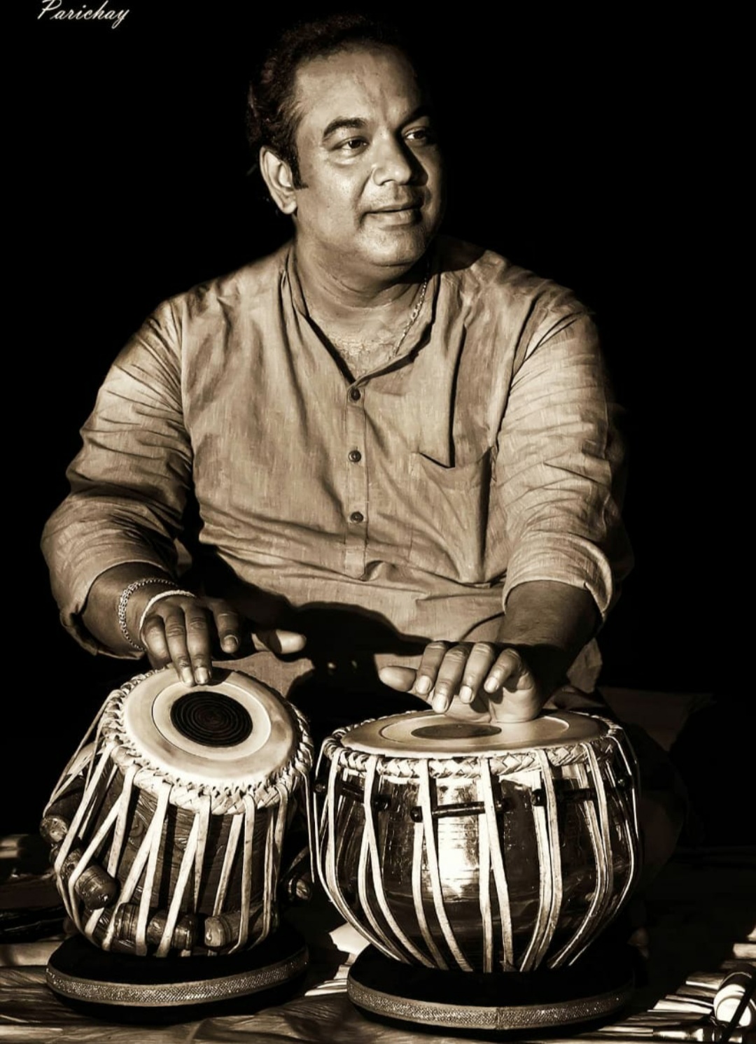His musical path began with the Tabla, guided first by his elder brother Tapan Thakur. This early foundation blossomed under the mentorship of Guru Anand Bodas, a revered maestro of the Farukhabad Gharana. After Guru Bodas’s passing, Subir Thakur continued to refine his skills under the legendary Guru Pandit Shuvankar Banerjee, deepening his understanding and technique with every beat.