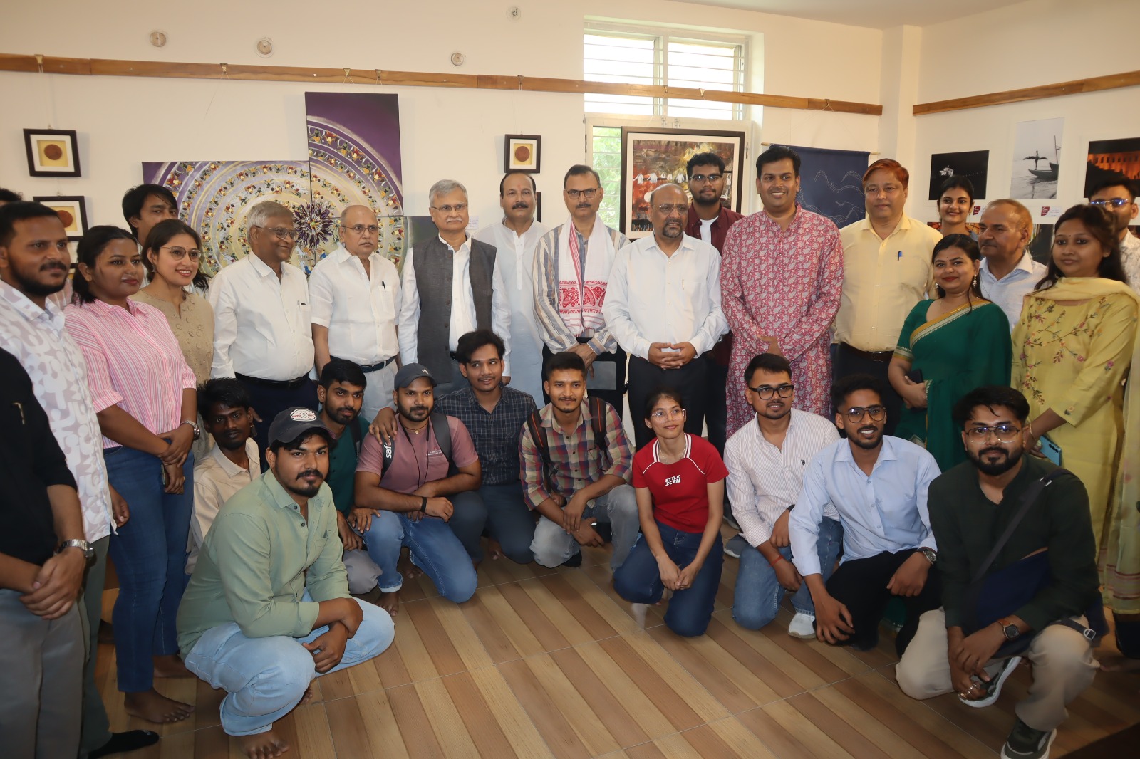 The Vice-Chancellor, Prof. Ajit Kumar Chaturvedi, honored students for their achievements and inaugurated the Kalasutra Art Gallery alongside the launch of the Arambh exhibition. Featuring over 85 works by 65 students—spanning painting, photography, textiles and sculpture—the exhibition held from April 6 to 11, offering a rich tapestry of youthful imagination.